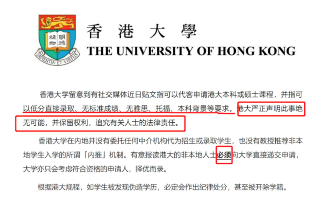最近几年港硕的风头很旺,在一些社交媒体平台上还有“保录取”港大的广告。