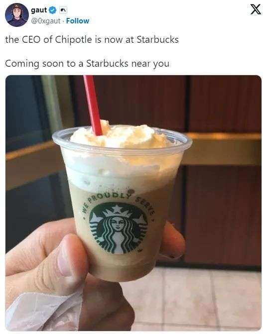 因此,在官宣了这个人事变动后,网友们也开始了玩梗,大家的调侃多是关于未来星巴克的份量的: