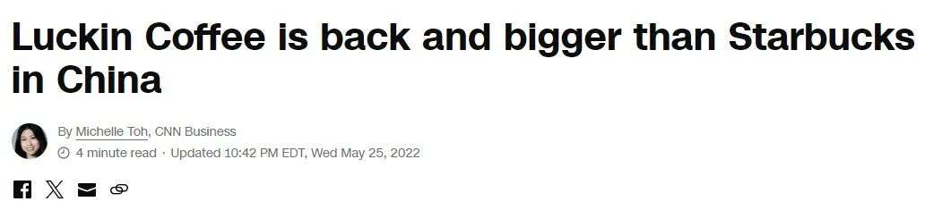 早在2022年时,星巴克在中国市场就已经感受到了吃力。CNN曾发表文章表示,瑞幸咖啡严重挤压了星巴克在中国的生存空间。