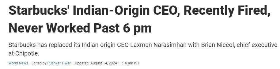 虽然即使在星巴克的公告里,官方也很给面子的说是“stepping down from his role as ceo”,但明眼人都知道这位印度裔CEO多半是“被离职”。
