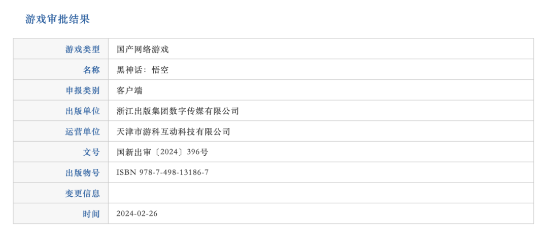 《黑神话》今年2月获得版号,其出版单位为浙江出版集团数字传媒有限公司。浙版传媒主要负责游戏内容审核、出版申报及出版物号申领工作。