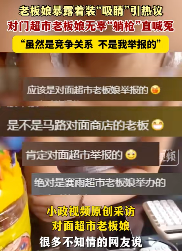 老板娘穿着暴露被举报后,不少网友把矛头对准了街对面的另一家小超市。