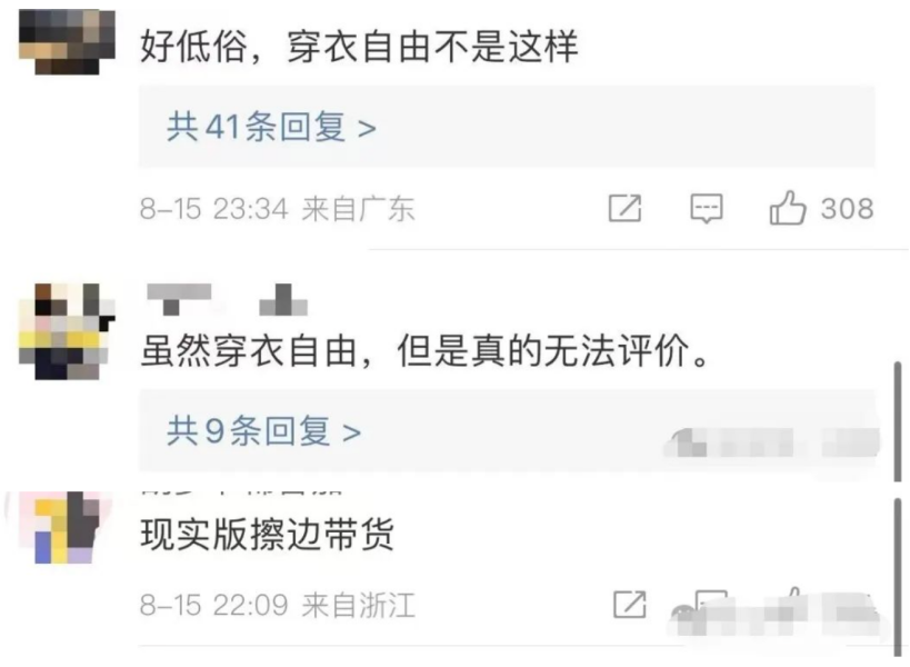 另一部分网友觉得老板娘有擦边带货的嫌疑,这不是穿衣自由,是有伤风化。