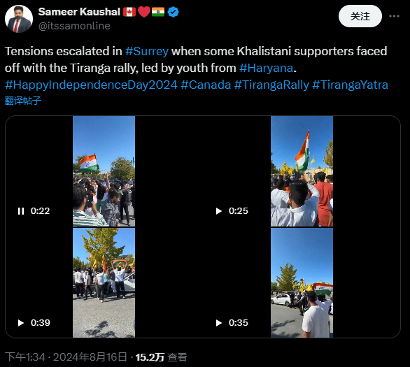 该事件的视频片段在社交媒体上广泛分享,引起了印度政府和加拿大印度侨民的强烈反应。