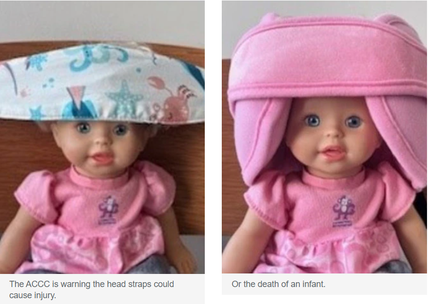 ACCC指出,这些产品与海外发生的几起婴儿死亡事件存在关联。特别是儿童汽车座椅的头部固定带,这类产品常作为附加配件在线销售,旨在帮助儿童在乘车时保持头部直立。