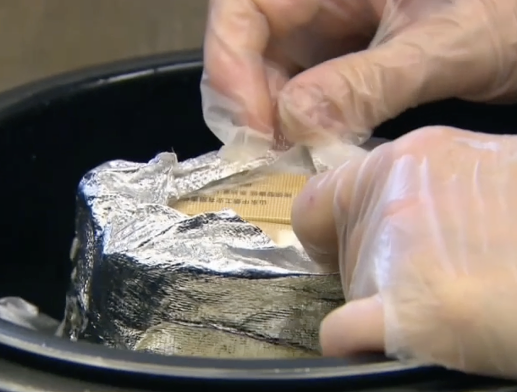 边检人员注意到,行李中还有一口锅,内中存放的物品模糊难辨,因此决定开箱检查。