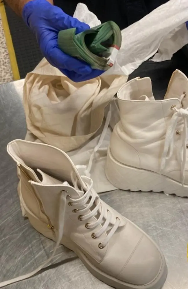 报道称,边防局的工作人员在她的鞋子和衣物中发现了数十捆现金,随后进行搜身检查时,又在她的口袋里找到了大量现金。