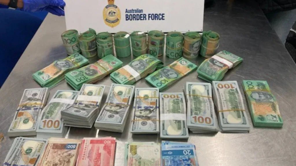 报道称,被查获的现金包括近15万澳元、8万多美元以及近7000港币。