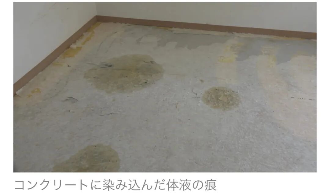 后来清扫工清拆房屋时才发现,体液穿透了地板,直接渗透到混凝土中。