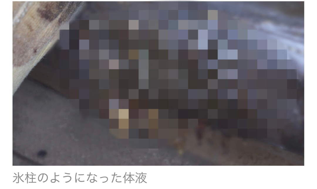 由于遗体在温暖的室内待了整整三个月,受到暖气和外界温度的影响,男子已经彻底液化,成为一堆堆糊状物体。