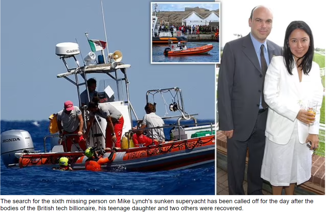 本周一(19日凌晨),一艘超豪游艇在意大利西西里岛附近的一场异常风暴中沉没,造成1人死亡,6人失踪,其中包括被誉为“英国版比尔‧盖兹”的亿万富豪迈克·林奇(Mike Lynch,下图)。