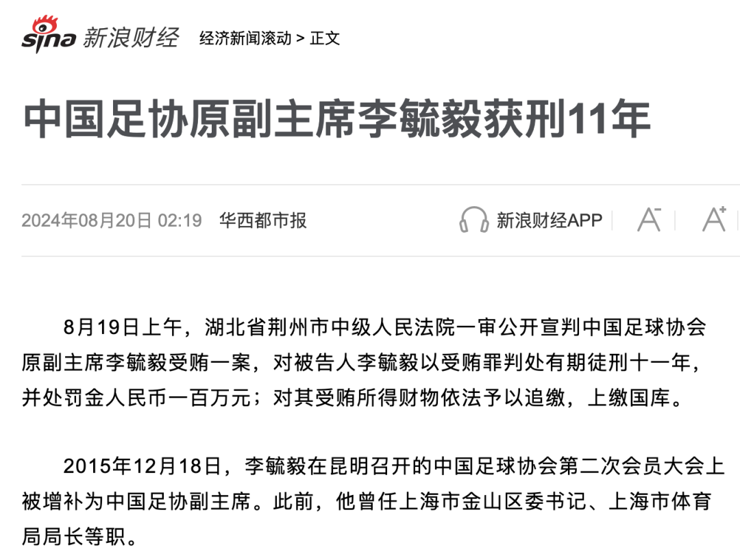 这一判决不仅是对李毓毅个人的惩罚,更是对整个足球界腐败行为的一次严厉警告。