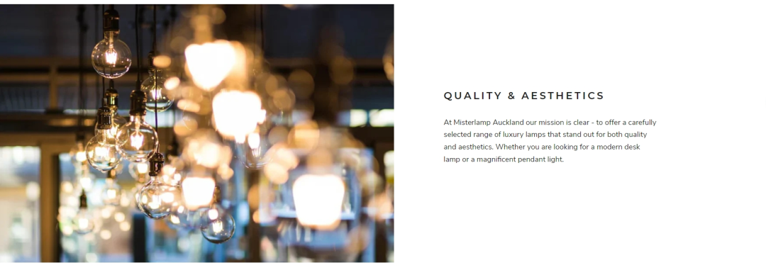 除此之外,该网站甚至洋洋洒洒在网站主页写了四页介绍,包括品牌始于对照明设计的热爱、从一家小企业发展成精致灯具的品牌、品质和美感都出众…把自己包装成一个高端设计品牌。