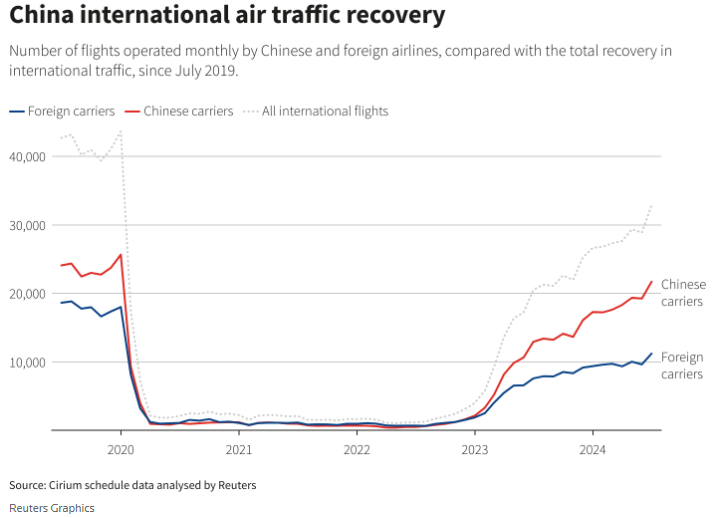 直至现在,中国航空公司还在增加国际航线。