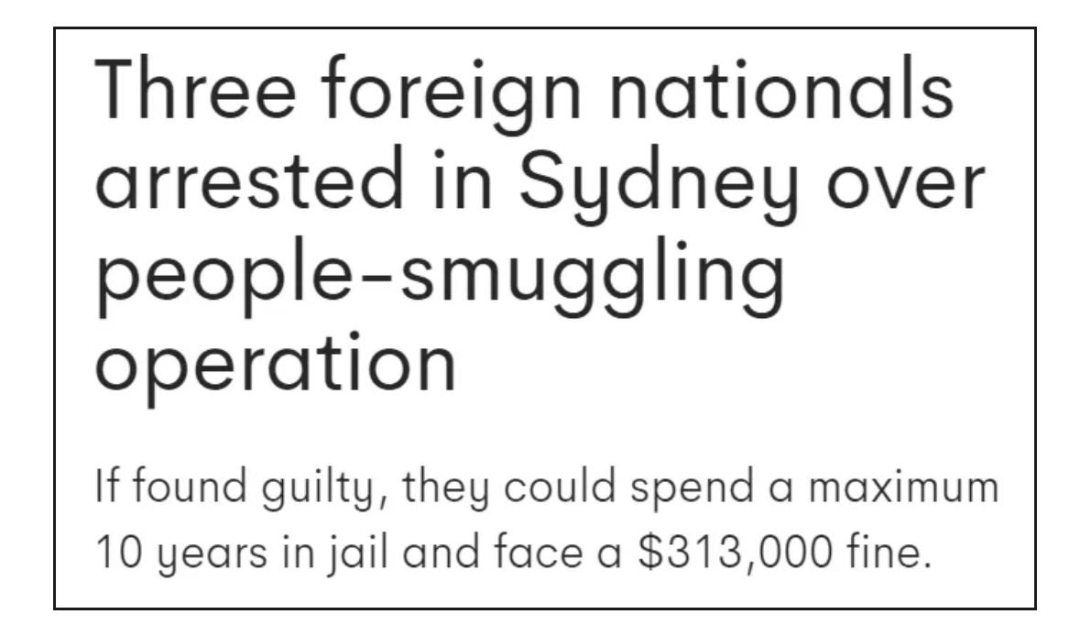 每人均被指控一项合谋窝藏非公民的罪名,根据澳洲法律,他们恐面临可 10 年监禁,并面临313,000 澳币的罚款。