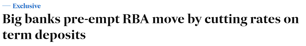 上周,联邦银行(CBA)将其几乎所有定期存款产品的利率下调了