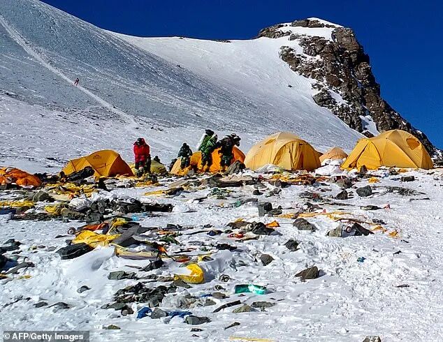 到处都是失去用途的氧气罐、破旧不堪的帐篷、五颜六色的食品包装袋,以及最可怕的、那一坨坨已经冻结的人体排泄物……
