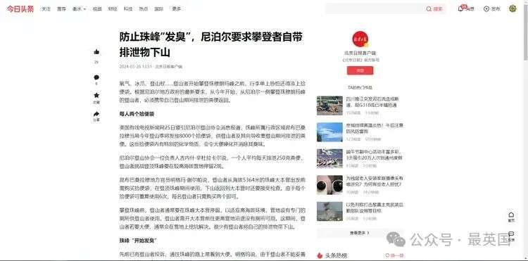 针对日益严重的珠峰环境污染,2024年,尼泊尔政府终于下定决心,出台了一项严厉的新规定。