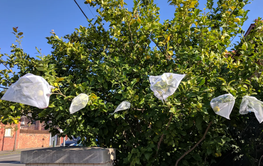 不仅地里蔬菜瓜果需要被保护,一些结有果实的果树也同样会被这种防虫网保护起来。