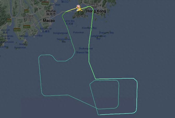 这是一个飞行时间为13个小时15分钟的长途国际航班,载着几百人,用一个出了故障的引擎继续飞是不可能的。机长一边等待塔台指示,一边在香港以南的海域上空盘旋。
