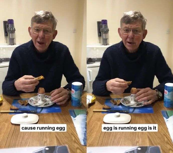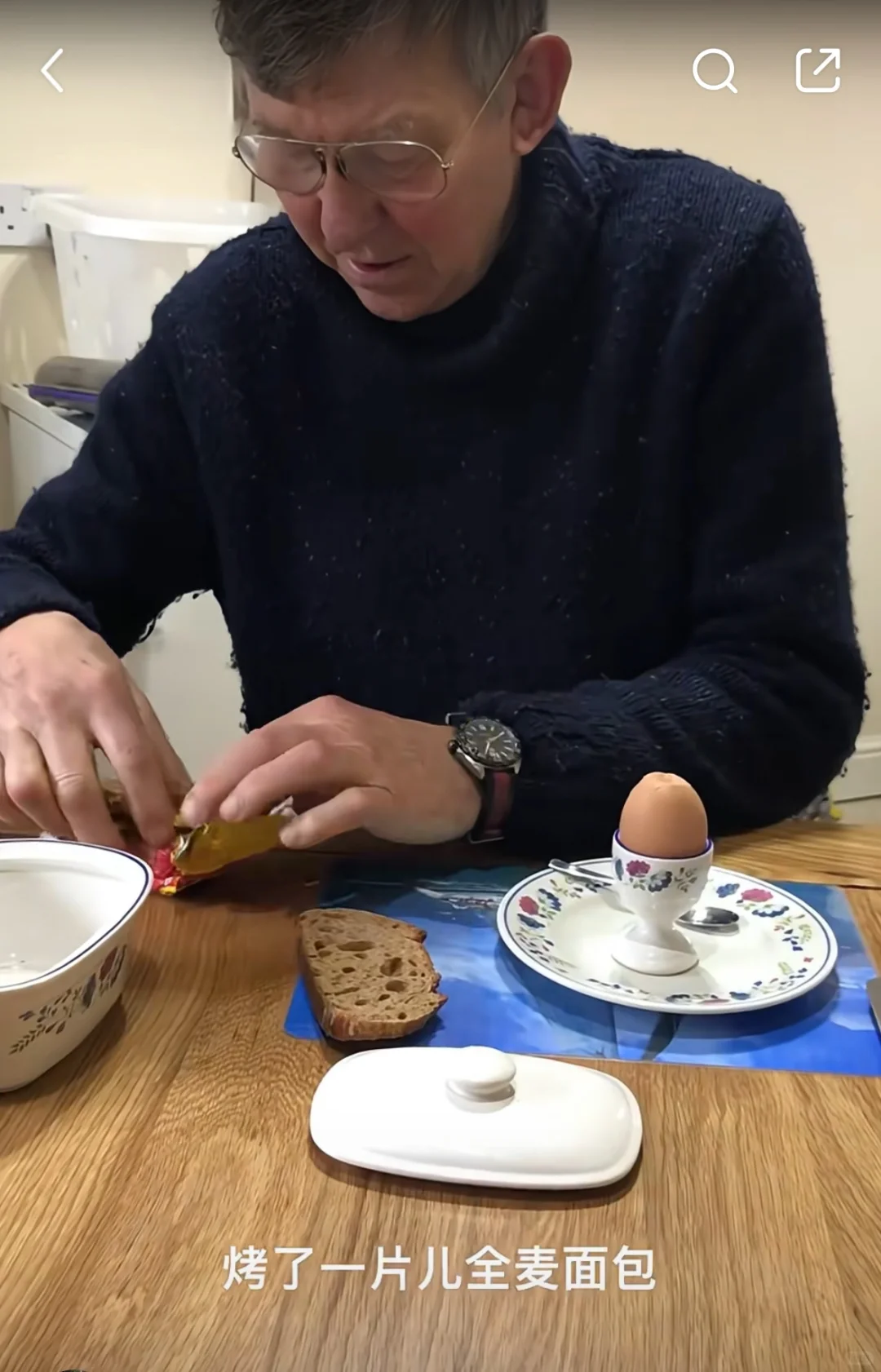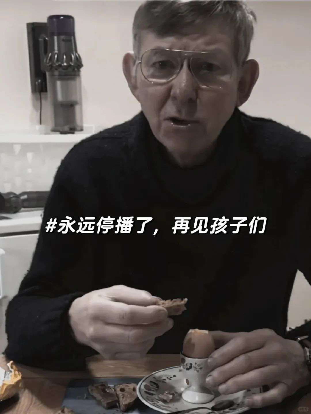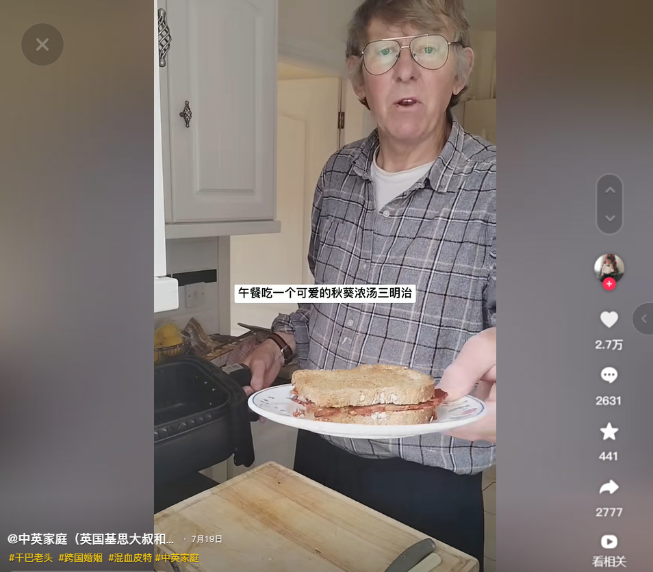 因为混杂着浓重的东北口音,lunch听起来很像“烂吃”,中国网友看了心领神会地默契一笑,而这英国小老头还在笑眯眯地啃他的干巴面包。