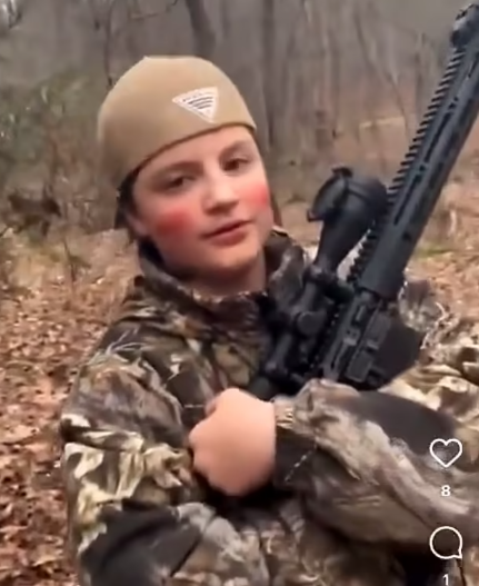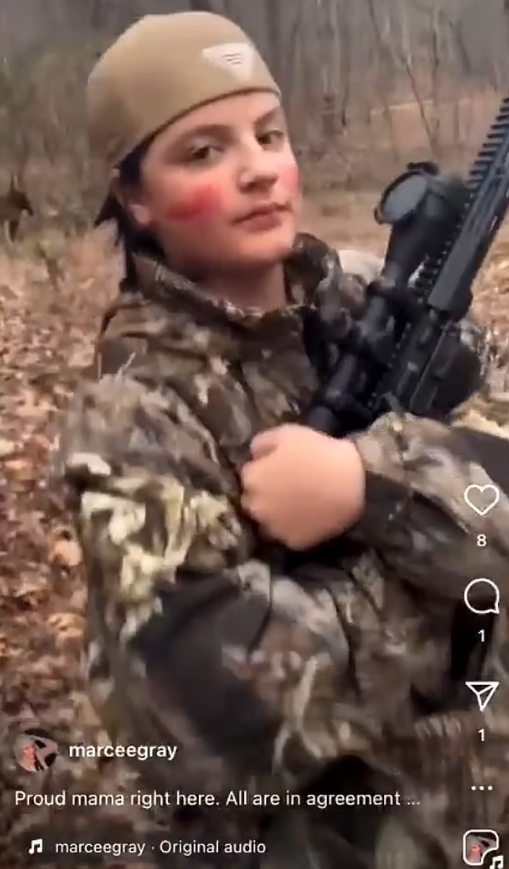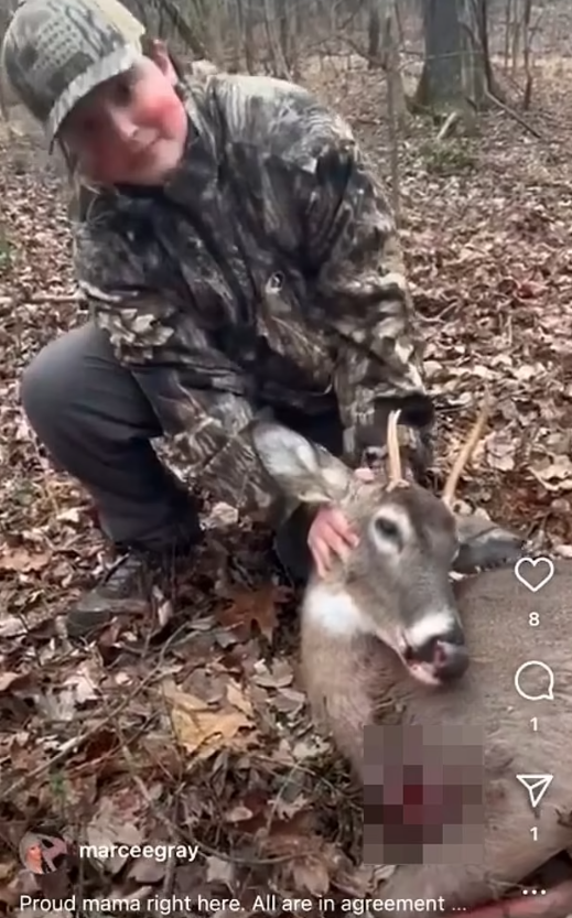 在报告中,这位父亲描述了手机上最近与儿子一起狩猎的照片:你看他的脸颊上沾了血,他射杀了第一只鹿。