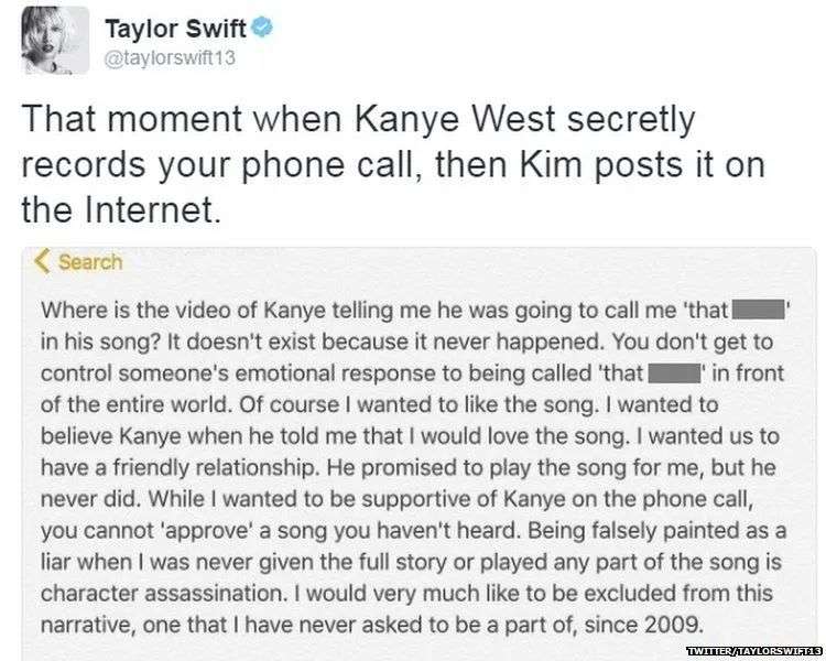 卡戴珊还把霉霉和侃爷的通话录音公开,在这个版本里,霉霉确实说了句:it’s not mean。