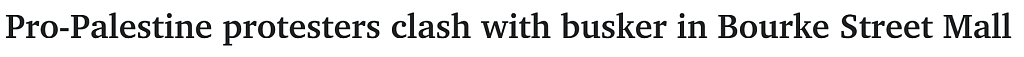 《先驱太阳报》9月8日报道,周日下午,墨尔本CBD陷入混乱,亲巴勒斯坦抗议者在Bourke Street Mall与一名街头艺人发生冲突。