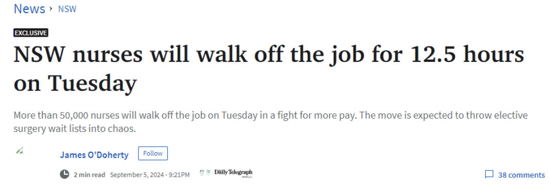 澳大利亚的医疗资源本已紧张,特别是在人口众多的新州,护士的罢工无疑会使情况更加严峻。