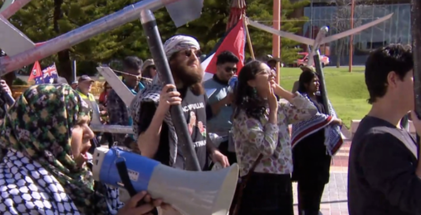 抗议者表示,他们希望澳大利亚政府停止为战争机器提供资金。