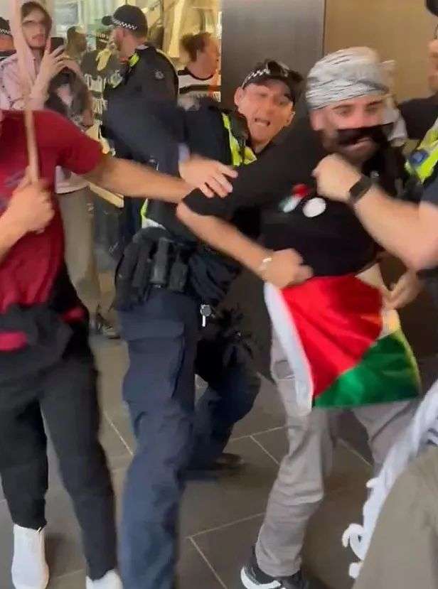 抗议者还涌向Flinders St Station,大喊“所有犹太复国主义者都是恐怖分子”。