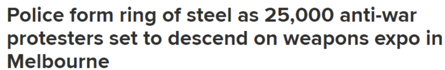 抗议的焦点直指即将在墨尔本会展中心举行的武器博览会。由于组织者呼吁取消一场武器博览会,墨尔本今日开始将迎来一场大规模抗议活动。