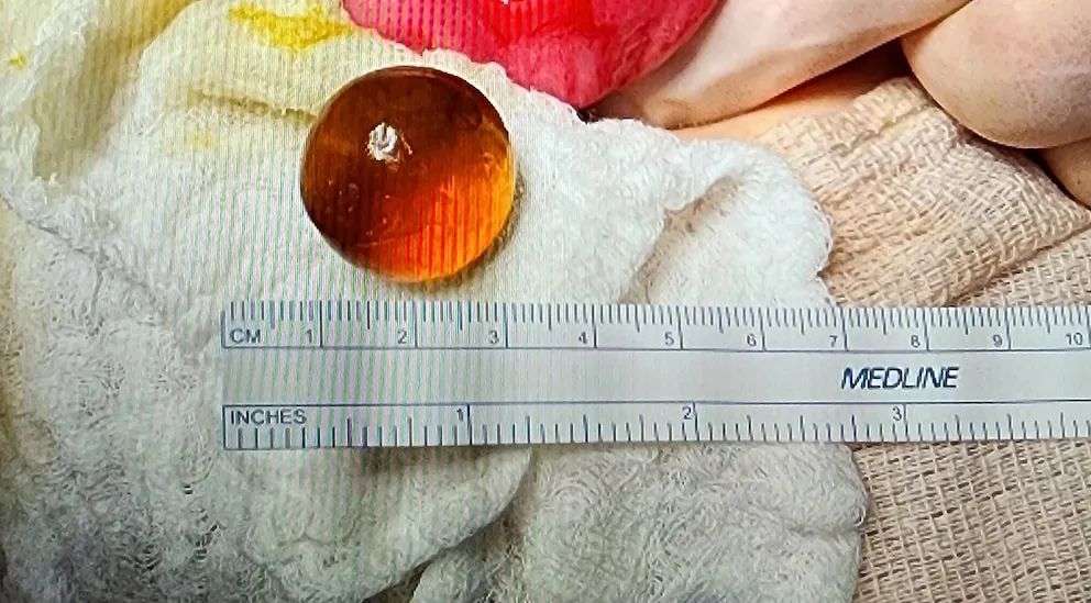 通过手术取出的吸水珠,就是这颗吸水珠,差点造成了严重的危险。