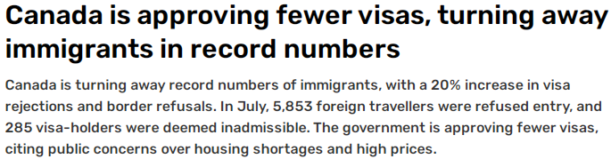 拒签人数上升之际,加拿大总理特鲁多领导的自由党政府正面临越来越大的压力,要求减少临时居民的数量,原因是人们担心住房短缺和房价高企,移民被认为是造成这些问题的部分原因。