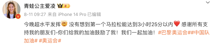 这是谷爱凌个人运动生涯中首个全马比赛,虽然没有溅起大的水花,但可以看到,坚持跑完全程的青蛙公主冲劲十足,毅力非凡。