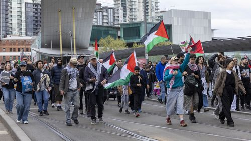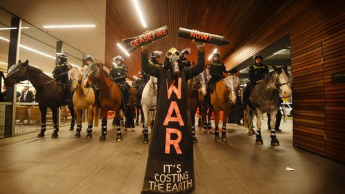 此次抗议由多达50个激进团体组成,其中包括巴勒斯坦学生组织、破坏战争组织和Naarm武器组织,他们希望此次博览停止举行,呼吁停止为战争武器提供资金。