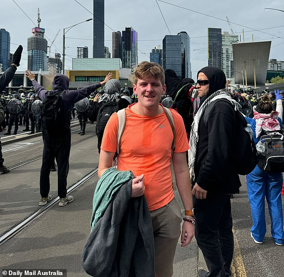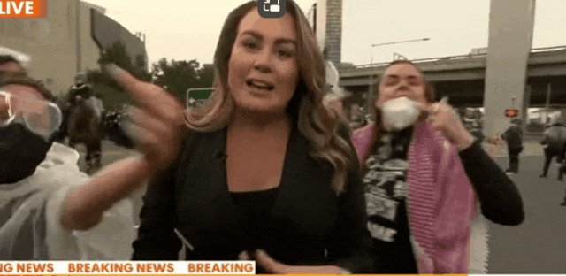 Sunrise电视记者 Teegan Dolling 正在做现场报道,当时她被至少四名抗议者包围,其中一些人戴着 keffiyehs 和口罩,他们向镜头伸出中指。