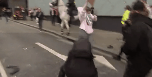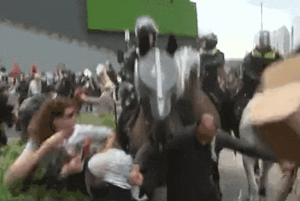 早上 7 点刚过,抗议活动就已经开始升温,示威者与骑马的警察发生冲突。
