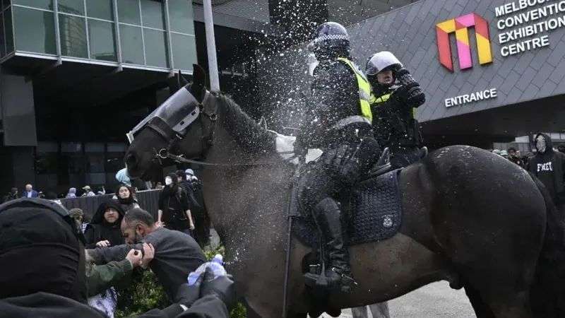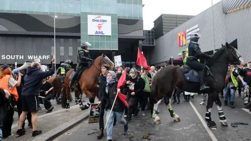 不过,展会仍然正常举行,人们在警方的护送下进场,见了这个大的阵仗,不知道他们还有没有心情继续谈军火生意……州政府声称,警方控制抗议活动的行动将耗资约1500万澳元,还从其他州借调了很多警察。闹出这么大的事情,维州州长和澳总理艾博年都紧急回应。澳总理艾博年称,袭击警察是“违法”的,但他也表示,民众“有权和平抗议”。维州警察局长Shane Patton称,自己对他们的行为感到震惊。“他们来这里是为了反对战争,所以大概也是反对暴力。我只能用一群伪君子来形容他们。”“他们实际上需要这样做(指找工作),而不是拿着报酬参加抗议。我每周每天都支持我们的国防工业,我知道澳大利亚人也绝对会支持。”换句话说,就是表示这些参加抗议的人都没工作,游手好闲,所以才会来抗议。无独有偶,一名此前受到抗议者影响的司机也表示了相同的看法。“我认为抗议者们应该去找个班上。我刚刚下班,我相信他们能找到工作。”墨尔本爆发大规模抗议活动,数万人与警方发生冲突,导致很多人受伤,墨尔本陷入瘫痪。