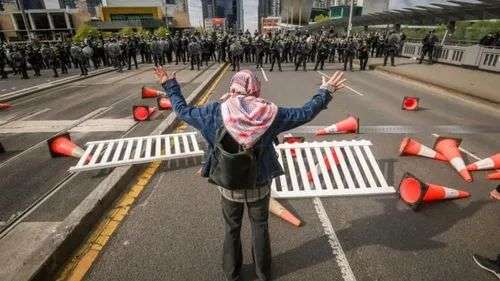 据称,警察也被迫使用了胡椒喷雾,并发射了橡胶子弹,有数十名警察受伤,多名涉嫌犯罪的人被捕。