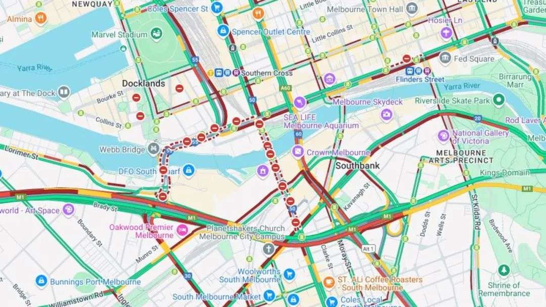 因为聚集的人实在太多,墨尔本CBD附近的交通完全瘫痪了……当局又不得不派出大量警察在附近的高速公路上巡逻,疏导车辆穿过拥堵的交通。司机们要花1个小时才能出去……附近的购物中心,DFO South Wharf被迫直接停业一天。