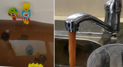 不仅如此,还有人晒出了更惊悚的照片,一位新州居民表示,自家水龙头一打开,出来的自来水变成了巧克力色。