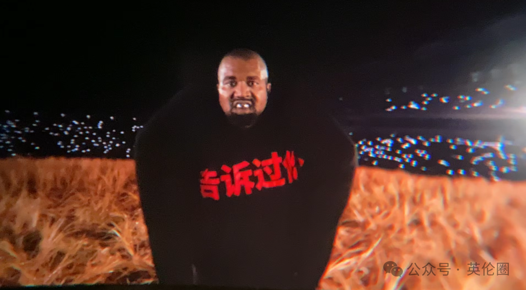 在一片红色的灯光中,侃爷身穿写有中文字“告诉过你”的卫衣,从麦田中缓缓走出,点燃了整个会场的气氛: