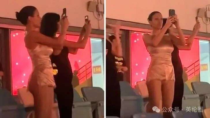 而妻子比安卡则拿着手机在看台上拍摄全程: