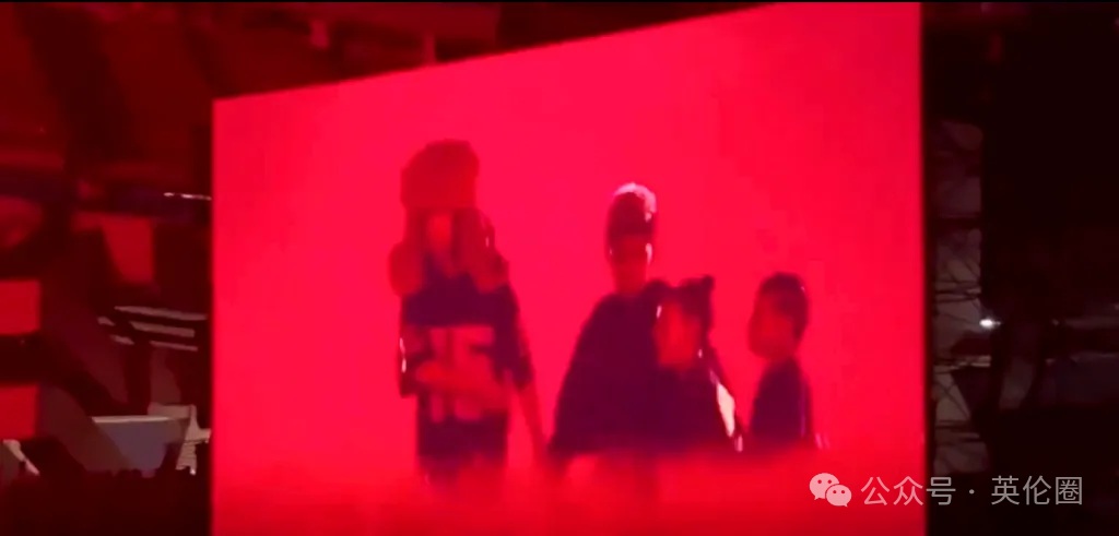 在试听会上,侃爷的四个孩子们也一起加入了演出。在麦田中,随着歌曲《Everybody》的节奏,他们手拉着手共同跳舞: