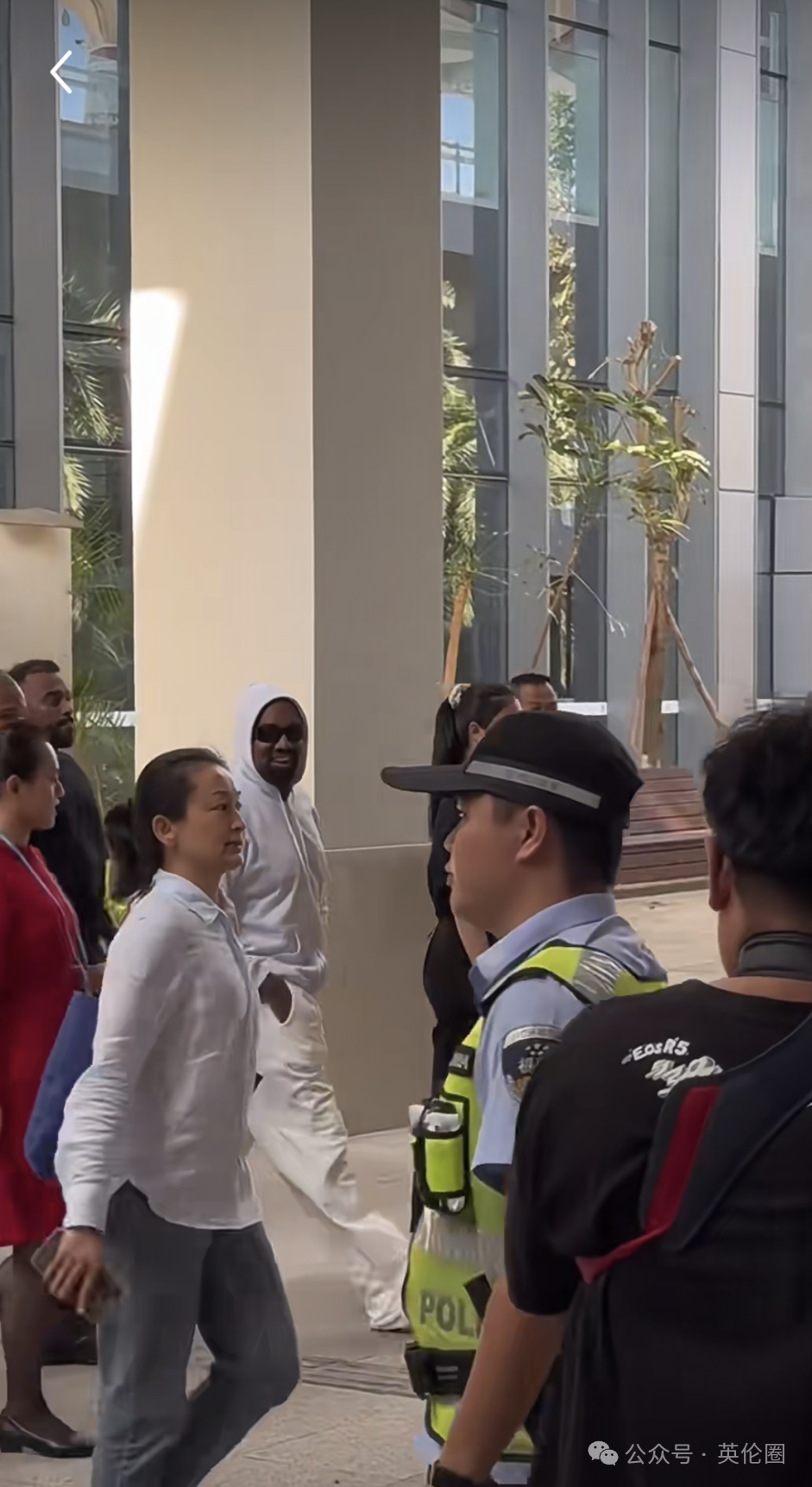 当天的侃爷一反从前邋遢的形象,以一身干净整洁的灰色卫衣和白色裤子亮相,甚至久违地穿上了鞋子,笑容满面,不时和周围的粉丝打招呼示意,看起来心情很好: