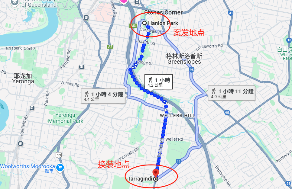 【2】有监控曾拍到,他在布里斯班南部的Tarragindi一个教堂里更换了衣服,随后乘车进入市中心,最后在Caxton St失去了踪迹。