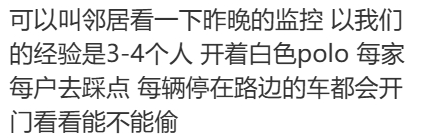 此外,去公共停车场尽量找人流量大一点的地方停车,避免探头死角或者僻静的地方。虽然不能百分百避免车子被砸的情况,但能降低一定的几率。