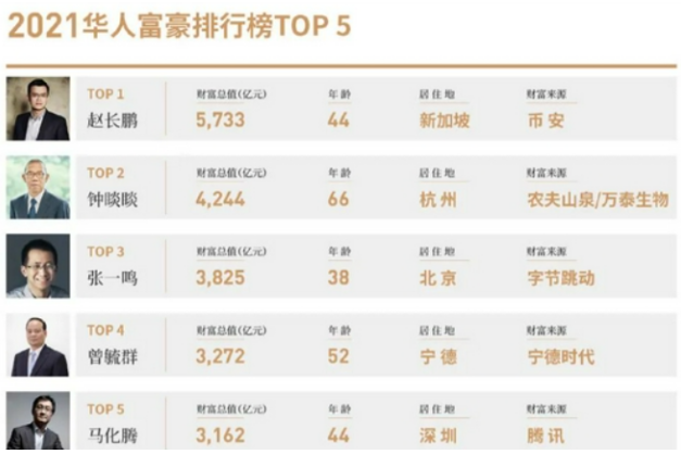2021年底,赵长鹏凭借941亿美元(当时约合人民币6348亿元)的身价超越农夫山泉董事长钟睒睒,登顶华人首富和加拿大首富,并跻身全球十大富豪之列!