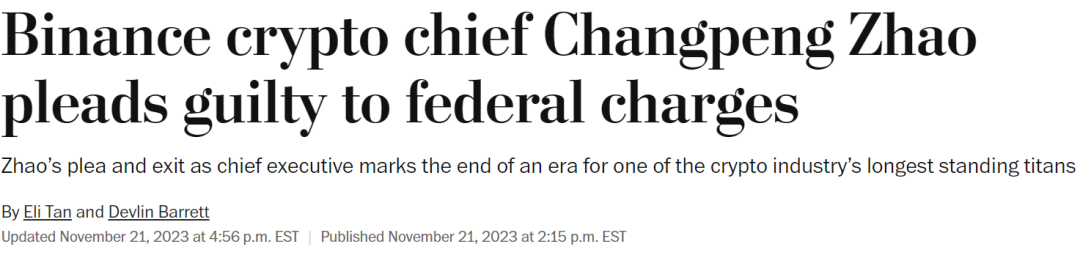 去年11月,赵长鹏和币安已与美国司法部达成认罪和解协议。
